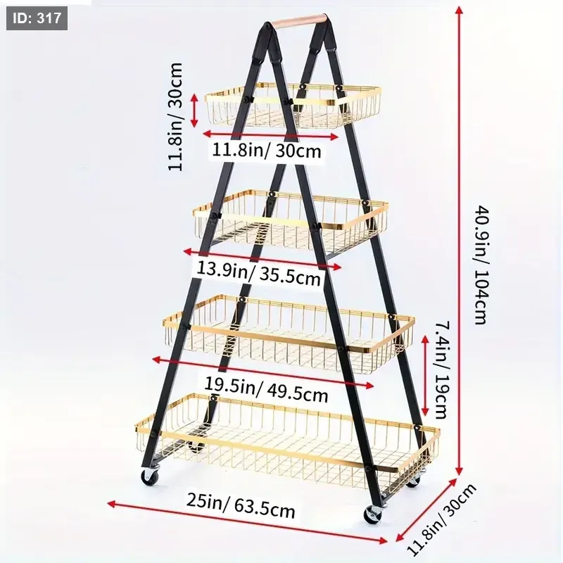 עגלה יוקרתית עם 4 קומות אחסון בעיצוב מודרני ומרשים.