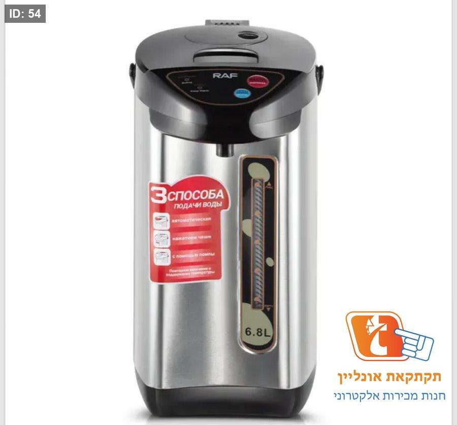 דוד מים ותרמוס בו זמנית, ייצור ג'מבו חברת RAF במחיר של #200 שח מפרטים: ✅ קיבולת 6.8 ליטר ✅חימום המים ושמירה על טמפרטורת המים בפנים ✅ נירוסטה עמידה לחלוטין בפני חלודה ✅אפשר להוציא מהחשמל ולקחת אותו לטיולים ✅יש לו 2 כפתורים לשחרור מים ⭕כפתור ידני ללא חשמל ⭕כפתור חשמלי אלקטרוני ⭕יש כפתור לחימום חוזר ברמה גבוהה יותר
