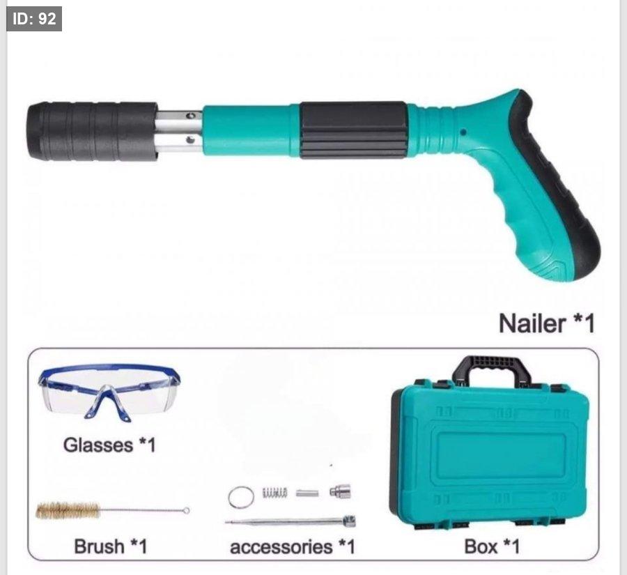 ההצעה כוללת אדם אחד בתוספת 100 ציפורניים חזק מאוד וקל לשימוש מתאים לכל המשטחים (ברזל, עץ, אבן, בטון, פלסטיק) מגיע עם קופסא + מברשת ניקוי + חלקי חילוף זה עובד על ידי הפעלת לחץ על הפרט בלבד